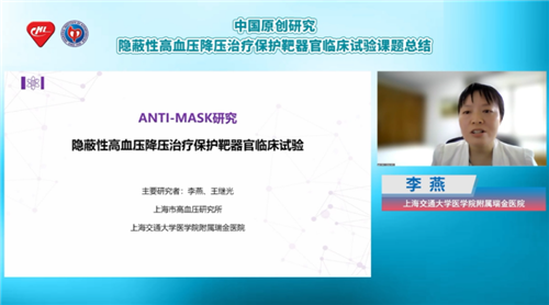 隐蔽性高血压是一种特殊类型的高血压,患者来院时偶测血压数据可能不高,需要通过24小时动态血压监测或家庭血压监测来诊断。据国内众多研究显示,隐蔽性高血压患者靶器官损伤和心血管事件发生风险较正常血压者显著增加,ANTI-MASK研究作为第一项探索隐蔽性高血压患者降压治疗效果的临床试验,首次说明了降压治疗有利于隐蔽性高血压患者的靶器官保护。为让更多临床医生知晓隐蔽性高血压危害,优化隐蔽性高血压患者治疗策略,在第八届中国血压监测学术会议期间,上海市高血压研究所、上海交通大学医学院附属瑞金医院李燕教授特带来专题报告,解读ANTI-MASK研究的试验流程与试验结果。