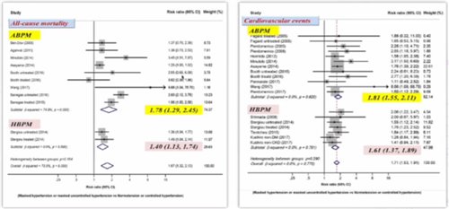 图4:家庭血压监测和动态血压监测诊断的隐蔽性高血压患者的心血管风险均显著增高